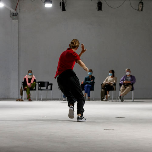 La creación se estructura en torno a tres momentos, cada uno de los cuales genera una experiencia y una temporalidad diferentes. Inspirándonos en el poema Alfabeto de la poetisa y ensayista Inger Christensen, jugamos con la palabra. Los intérpretes recorren el espacio, lo mapean, enlazando el cuerpo al gesto, el gesto a la voz y ésta a la palabra. Experimentamos un cambio progresivo, un "estar" en movimiento, un "ir" hacia algún lugar.